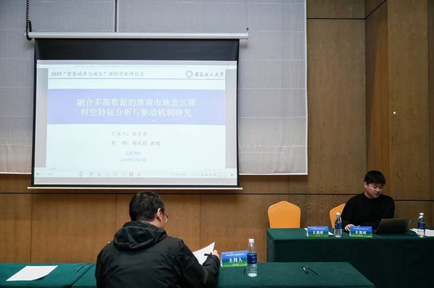 会议期间,王磊院长作为分论坛召集人主持了“资源型城市减灾与治理”分论坛阶段报告,郭庆彪教授在该论坛做了“Mechanism and prediction method of surface deformation evolution in closed mines”口头报告,陶远老师在“时空信息与智慧城市”分论坛做了“机理知识驱动的城市实提边界提取研究”口头报告,博士研究生程子苏在研究生论坛做了“融合多源数据的淮南市地表沉降时空特征分析与驱动机制研究”口头报告。此外,郭庆彪教授作为研究生论坛召集人还参与了研究生论文评审活动。