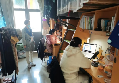 回到宿舍,阿姨在清早已经将过道打扫消毒了,宿舍是我们常住区,也是疫情防控的重点区域,除了阿姨每天的消毒打扫,辅导员和学院领导也常来我们学生宿舍,关心我们的生活学习情况,安抚我们的负面情绪,提醒我们要多通风不要熬夜,老师的关心让我们更有信心渡过难关。